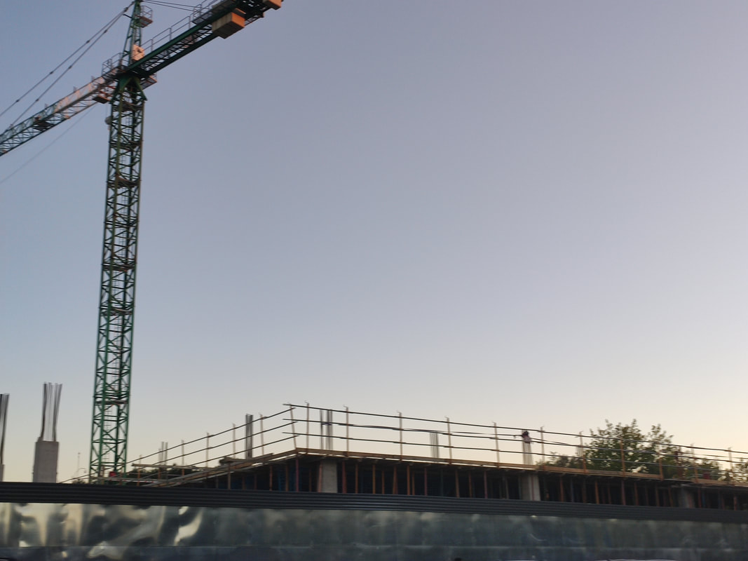 Las obras de Garbera avanzan a buen ritmo. El edificio de los cines parece completado y sigue la construcción de la zona de restaurantes con techos acristalados.