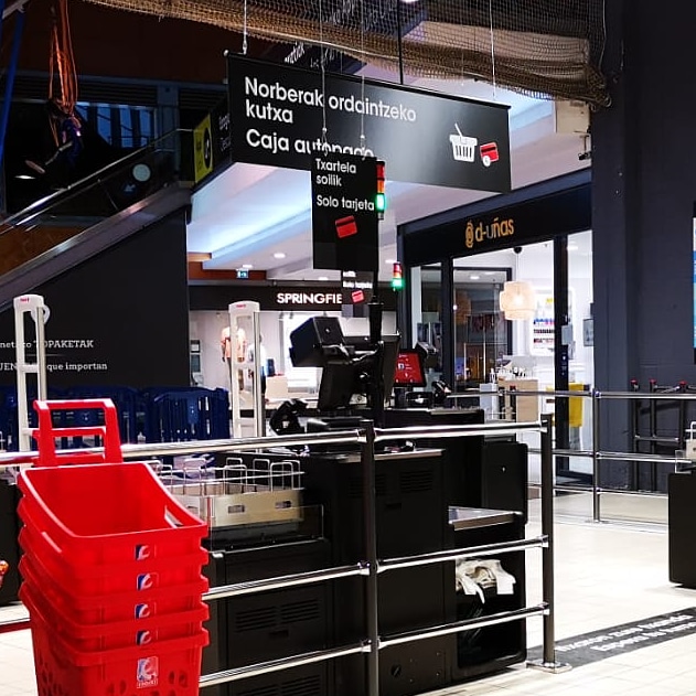 Tal y como ocurrió en el Eroski de Garbera la semana pasada, la cola única y la zona de cajas de autopago han llegado al supermercado Eroski del Centro comercial Urbil.