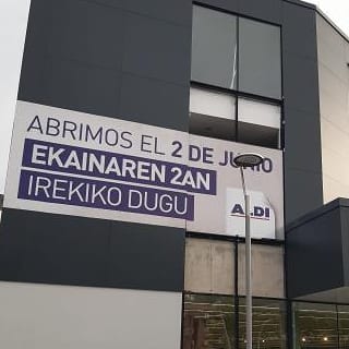 Tal como avanzamos con la fotos el pasado viernes, la apertura del supermercado Aldi de Intxaurrondo estaba cerca. Y ya tenemos fecha, como se ve en la imagen, el supermercado abrirá sus puertas el próximo miércoles 2 de junio en el paseo Zubiaurre del barrio de Intxaurrondo en Donostia.