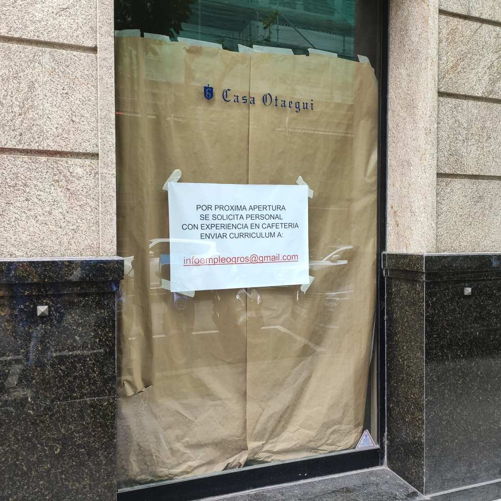 El local que ocupaba hasta hace unos meses Casa Otaegui, será ocupado por una nueva cafetería, tal como anuncia la oferta de empleo en es escaparate.