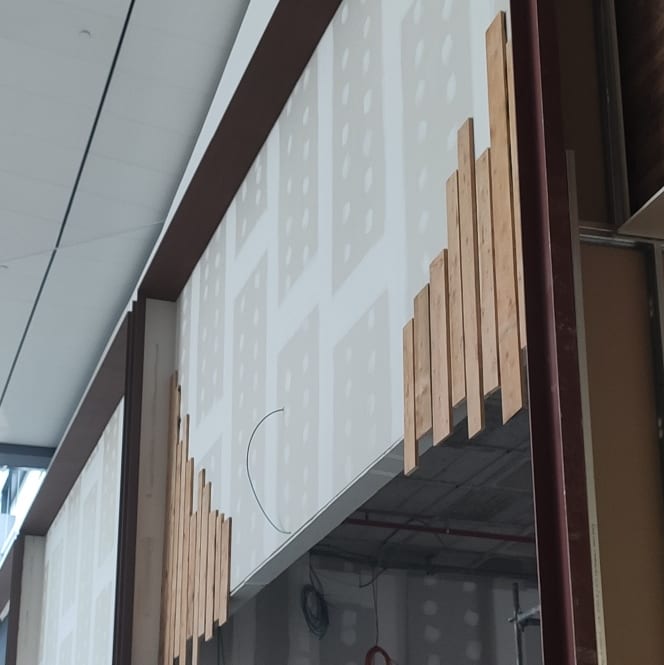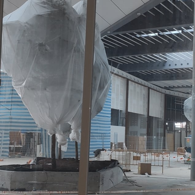 Esta semana se han instalado los árboles en la parte central de la zona de restaurantes y se han comenzado a instalar los rótulos de las marcas, aunque aún no se han puesto los nombres.