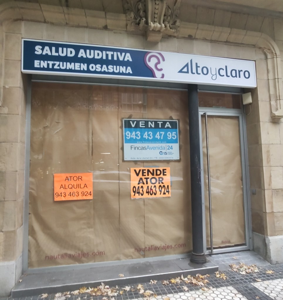 El rótulo colocado en el número 47 de la calle Urbieta, indica de apertura del centro auditivo Alto y claro en dicho local.