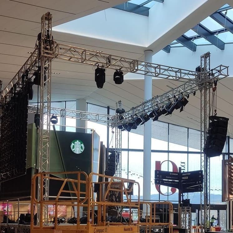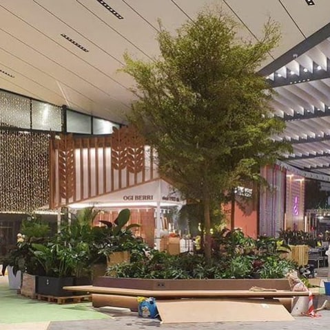 Últimos retoques para la inauguración mañana de la zona de restaurantes de Garbera con la actuación de Ana Mena.