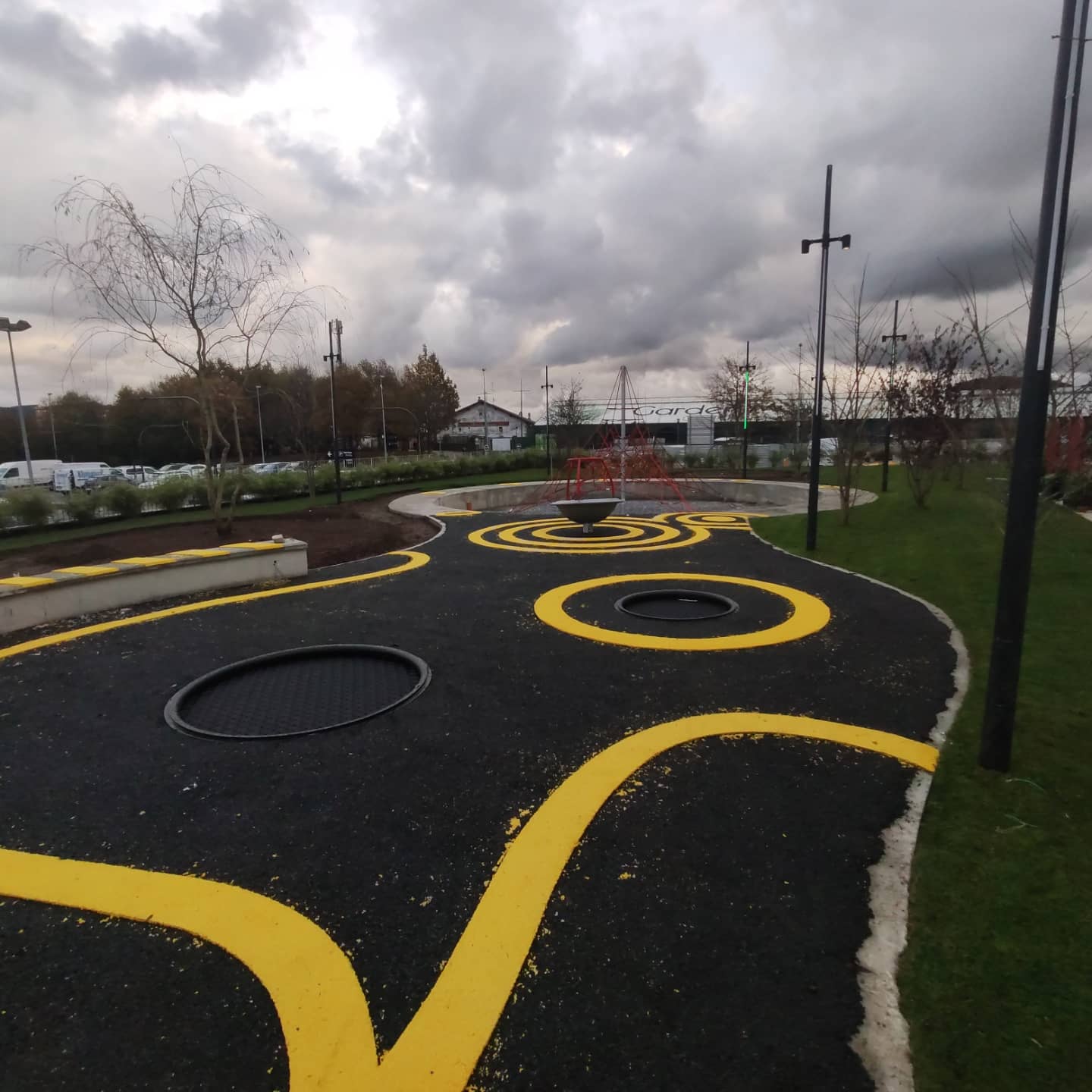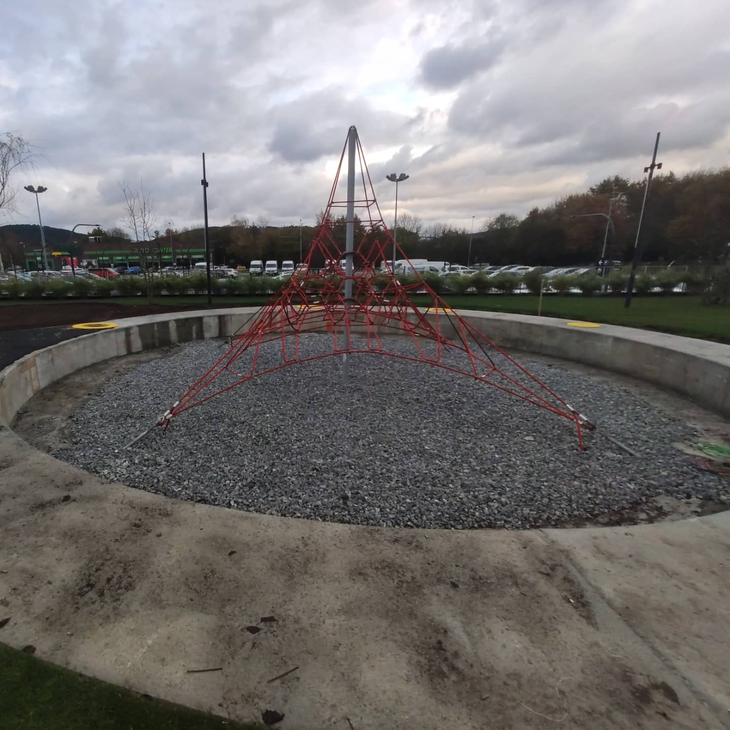 Además incluye un parque infantil con una araña y camas elásticas.