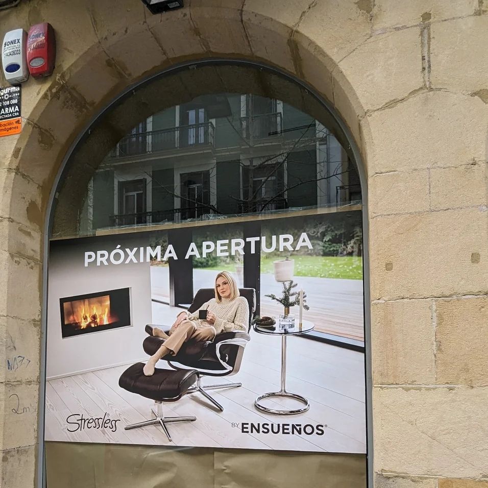 La tienda Ensueños abrirá próximamente en la calle Legazpi 8 con muebles de Stressless y Treku tal como anuncian en el escaparate.