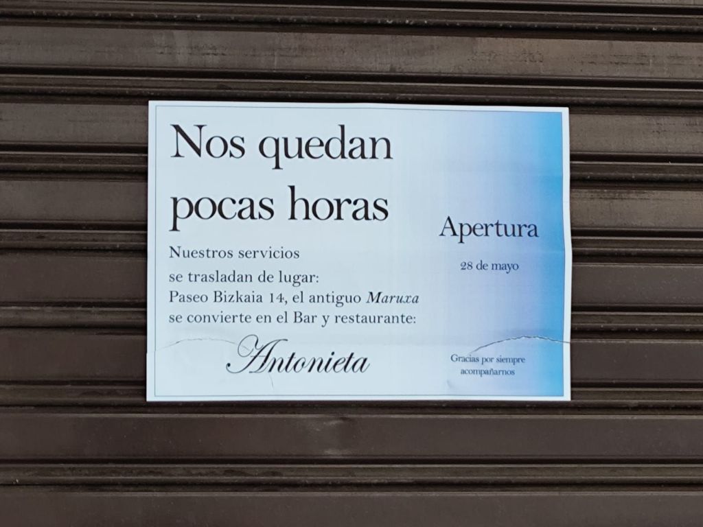 El bar y restaurante ANTONIETA abrirá el próximo 28 de mayo en el Paseo de Bizkaia 14, donde el antiguo Maruxa.