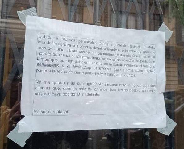 19 octubre, 2024 DonoSShopping Mundofila ha cerrado en la calle Prim 🔴 CIERRE 🔴El local de filatelia Mundofila cerró el pasado verano en la calle Prim 20 en el centro de Donostia. Compártelo: Haz clic para compartir en X (Se abre en una ventana nueva) X Haz clic para compartir en Facebook (Se abre en una ventana nueva) Facebook Me gusta Cargando... Relacionado