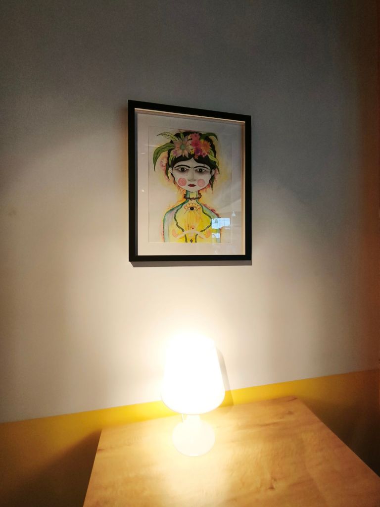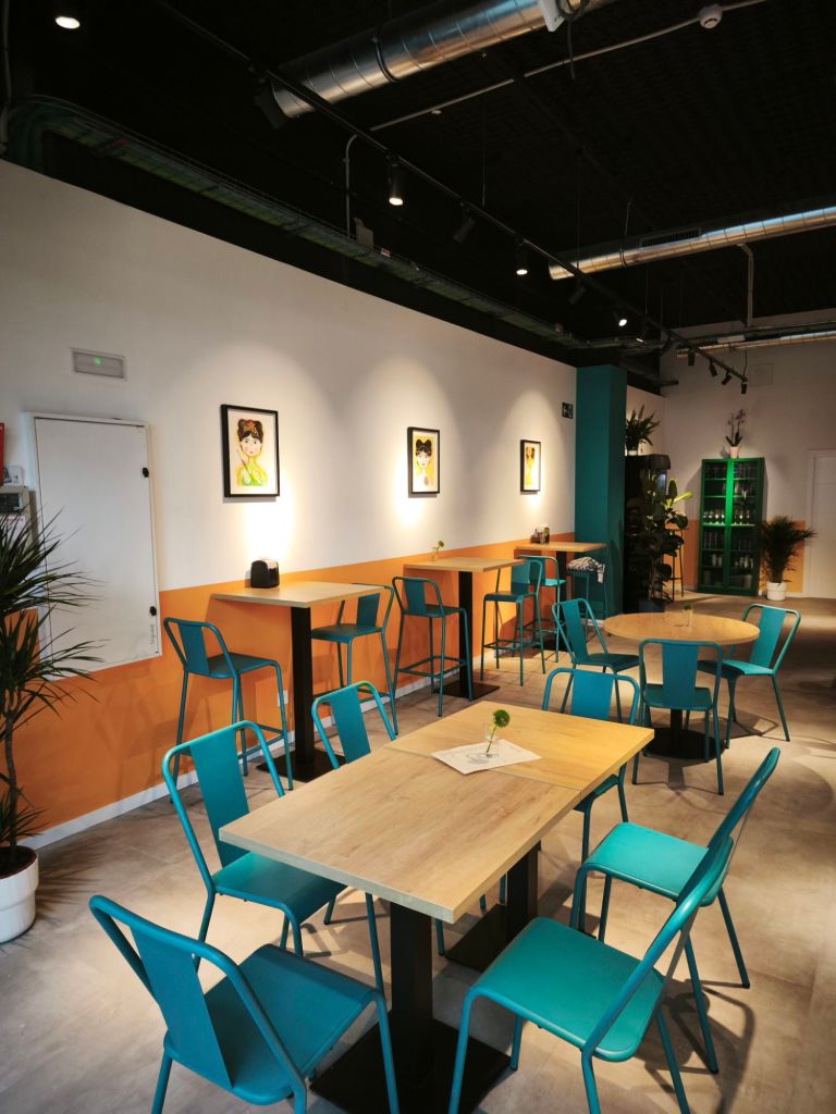 El local quiere emular un hogar cálido con luces de ambiente, plantas y cuadros de Frida Kahlo de un artista cubano-vasco Luís Emilio.