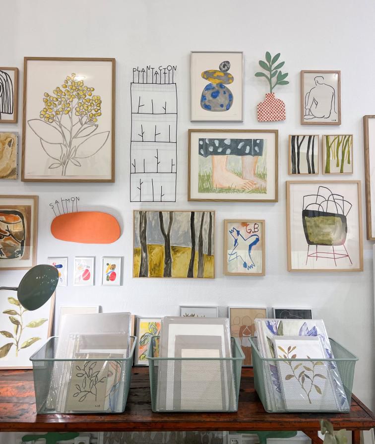 La tienda tiene cerámica, pinturas sobre lienzo, grabados, esculturas, láminas y joyas.